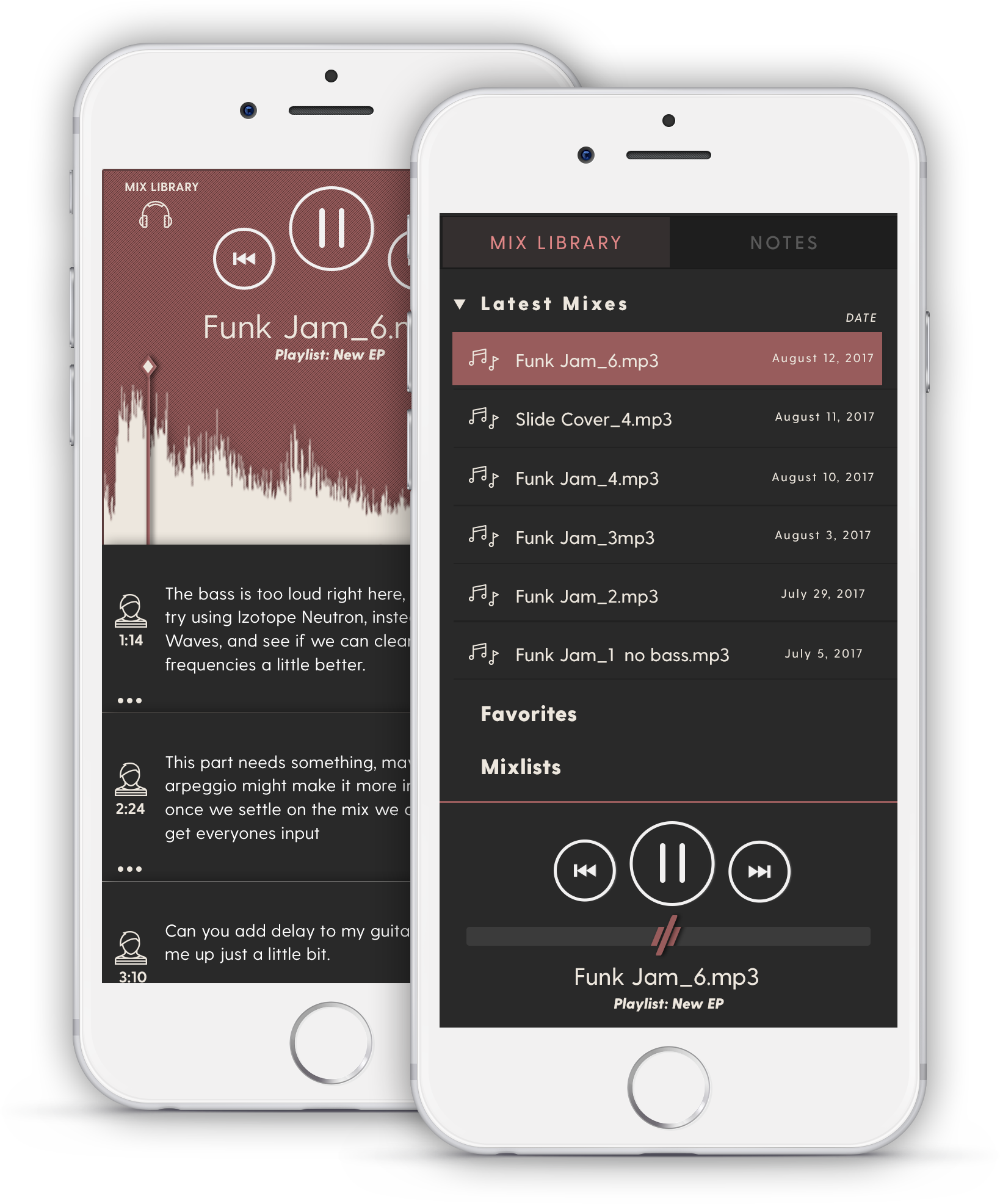 Organize your library of mix versions in a smarter, app designed for the music creator. Make mix notes with your band mates, share tracks with others for feedback, and even create and share private playlists.
